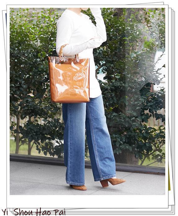 PVC袋采用竹制手柄,深受成熟女性欢迎。休闲运动鞋搭配它即可增加成熟的印象。