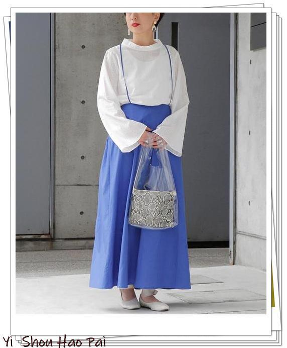 与白色衬衫裙搭配,营造出时尚感和干净感。